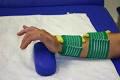 Mit der Reizstromtherapie erschließt sich ein weiteres Anwendungsgebiet. Beim Ausfall von Nerven in der Peripherie des Körpers, also besonders an Armen und Beinen, kommt es zum Abbau von Muskelzellen des vom geschädigten Nerv versorgten Muskels. Um dies zu vermeiden, werden während einer Therapiesitzung Elektroden angebracht und mit geringen Stromimpulsen (Reizstrom) die Funktion des betroffenen Nerven stimuliert. Dadurch bewegt sich der bedrohte Muskel wieder und atrophiert (= Abschwächung) weniger rasch.